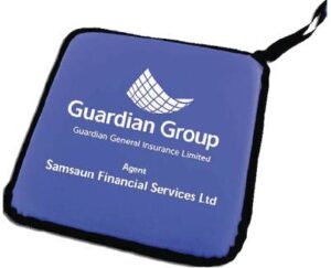 Foam pads sewn for your comfort. Features include, extra large pocket around edges, large handles for easy carrying.