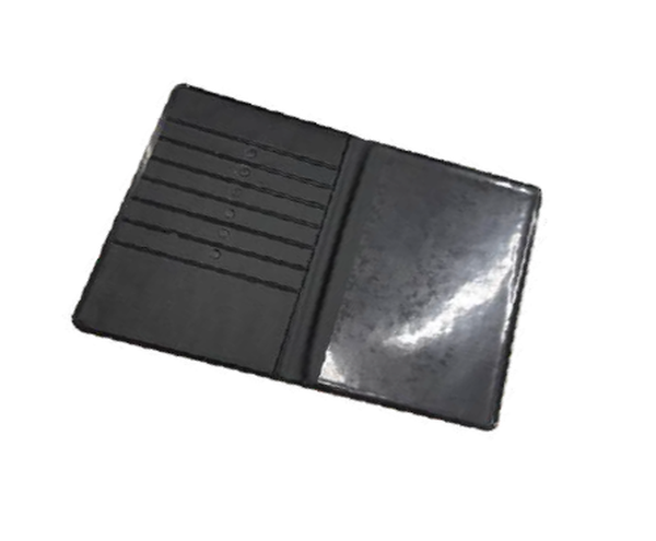 Sturdy board with a heatsealed vinyl cover and multiple pockets