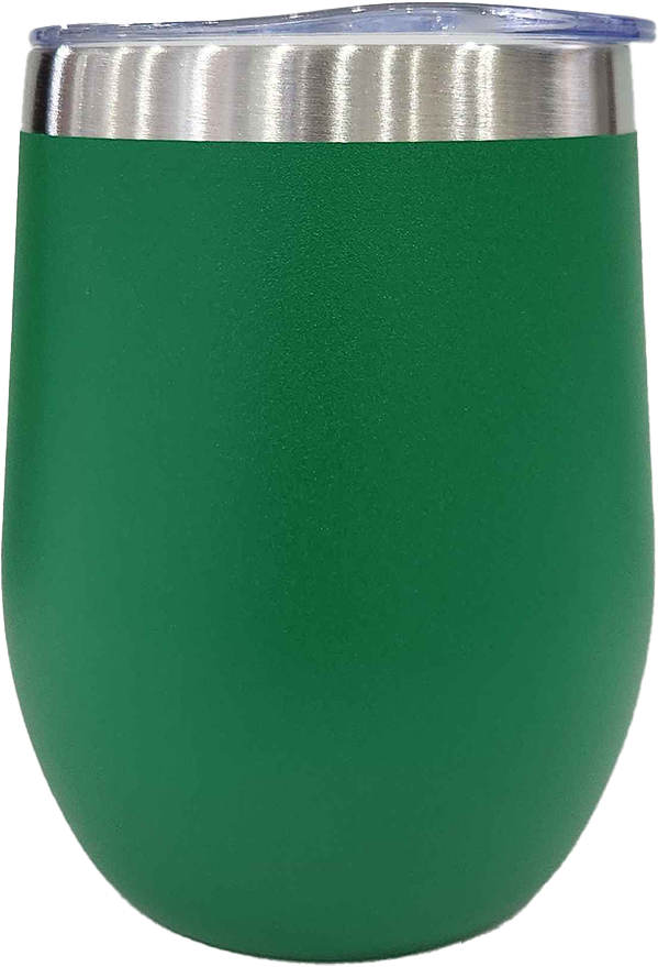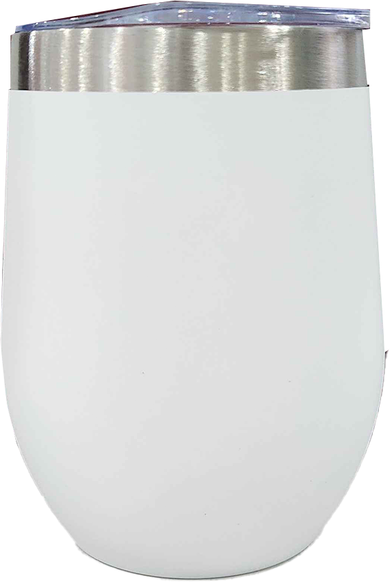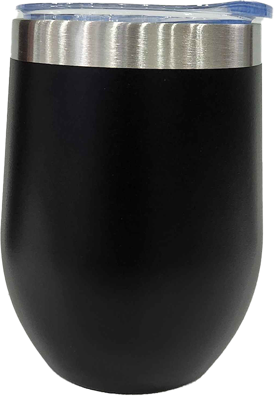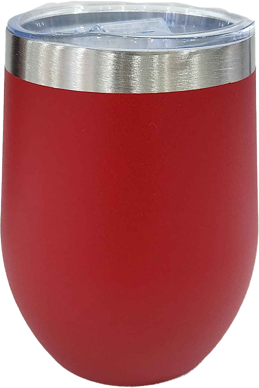 Elegant stemless wine cup with durable stainless steel inner and outer construction, featuring a convenient plastic slide lid for easy sipping and spill prevention.