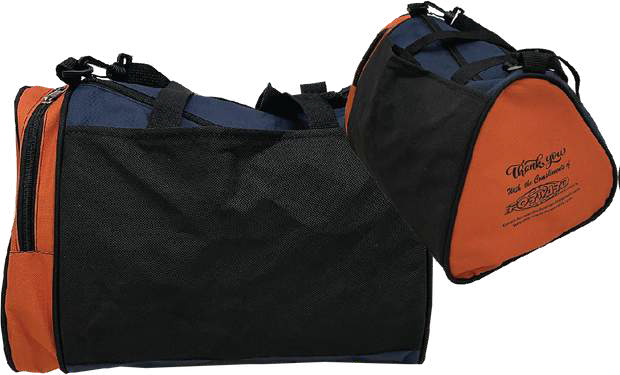 Unique triangular shaped bag with a mesh pocket and extra side pocket.